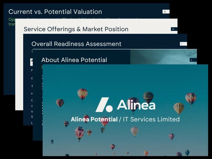 Discover your company's true exit value potential through our comprehensive business sale readiness assessment, Alinea Potential designed specifically for IT service owners.